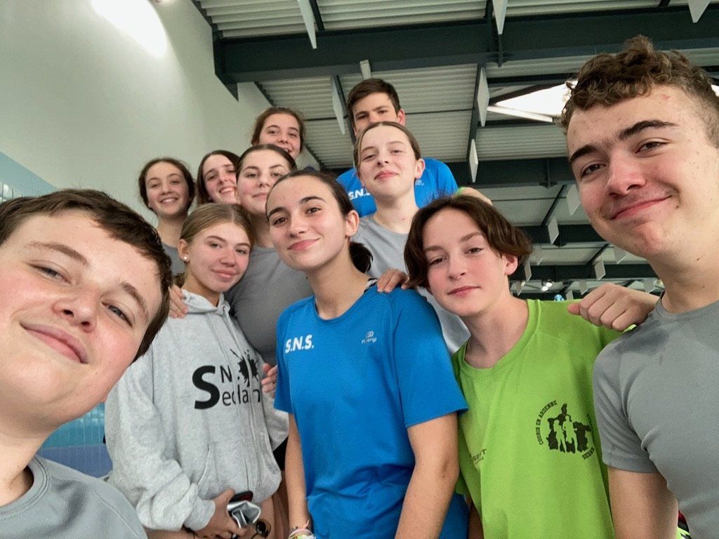 " 18 nageurs engagés avec Samuel, Giulia, Tom, Eline, Manon, Emie, Chloé, Siane, Flora, Antoine, Théo, Gabin, Nathan, Raphaël, Alice, Noémie, Valentin, Emilie qui ont pu arborer les nouvelles couleurs du club !! En résume, la SNS a brillé à domicile avec une nouvelle génération de nageurs qui ont raflé les médailles, et le groupe compétition élite qui a su répondre présent lors de son meeting !! 👏👏